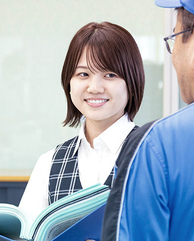 社内の雰囲気のよさは、入社前に求人サイトに載っていた写真を見て感じたとおりでした。男性社員の割合が高めですが、気さくな人が多く、休憩時間には雑談も。出荷伝票作成の際には、本当にその製品をその日に出荷できるかを、現場の人と話して確認しますが、私がわからないことも丁寧に教えてくれます。見積書の作成やFAX送信などを頼まれたときは、後からちゃんと「ありがとう」と言葉をかけてくれるんですよ。みんなやさしくてまじめな人たちばかりです、見た目以上に(笑)。以前に勤めていたサービス業と違って土日休みだし、長期休暇もしっかり取れるので、プライベートも充実。安心して仕事を続けていけそうです!